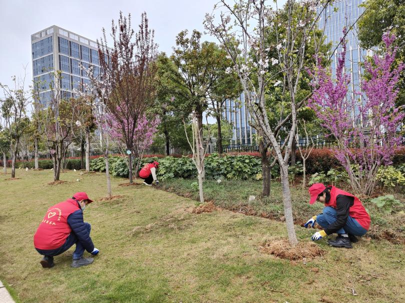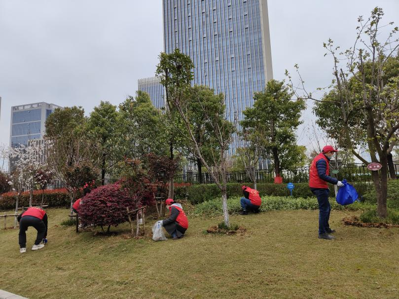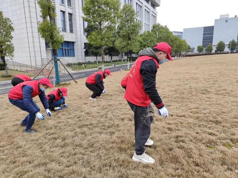 志愿者们团结协作,对院区草坪及绿化带杂草进行了细致全面清理,又对绿化带植被进行了修剪,最后认真捡拾了绿化带中的落叶、残枝、纸屑等垃圾杂物。