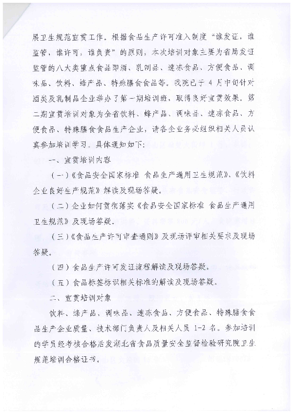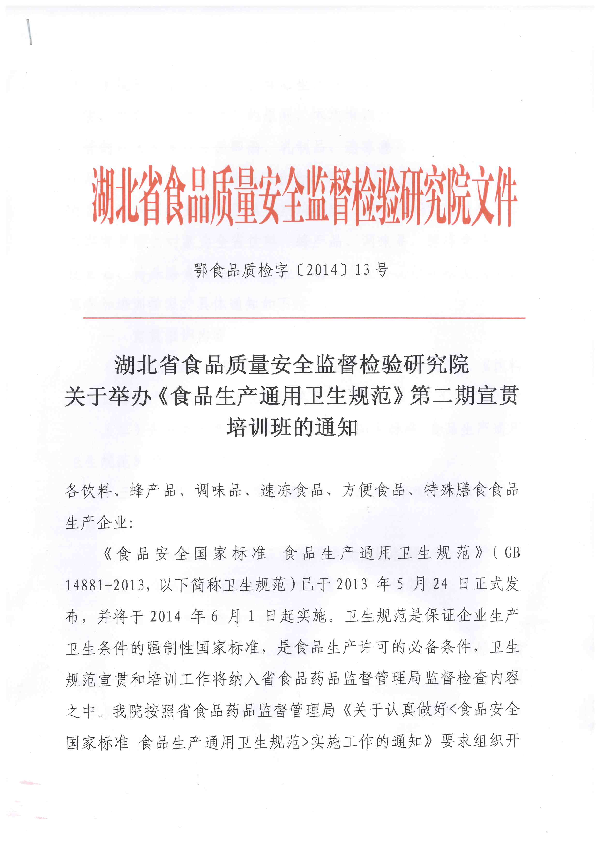 betway唯一官网关于举办《食品生产通用卫生规范》第二期宣贯培训班的通知