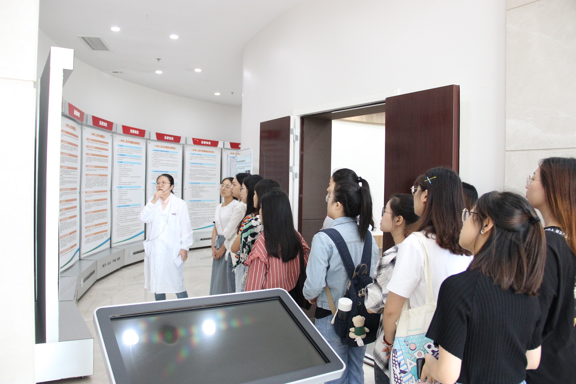 首先,我院正高级工程师彭青枝、王会霞等带领参观人员观看了位于检验楼一楼的食品安全科普基地,通过一张张展板,向大家讲解中央及各级政府对食品安全高度重视,并介绍了食品安全法规及食品安全消费小常识。