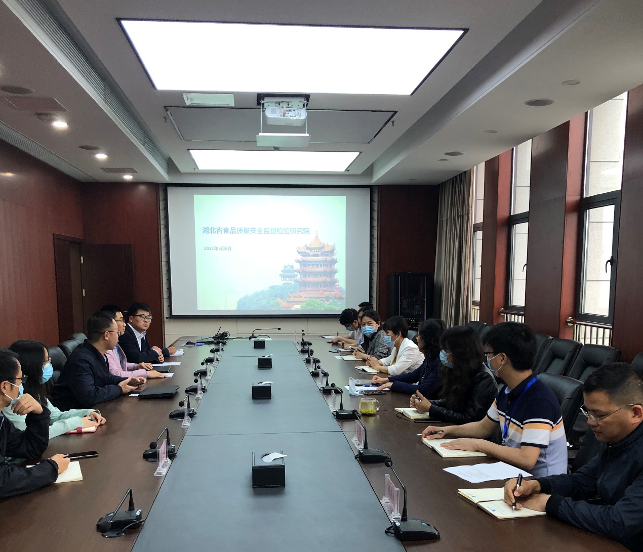 2021年5月6日下午,武汉纺织大学技术研究院刘轲教授率该院基于纤维材料的交叉学科研究团队一行6人到省食检院开展学术交流。参加交流座谈会的有省食检院副院长张莉、各科研团队带头人及骨干。